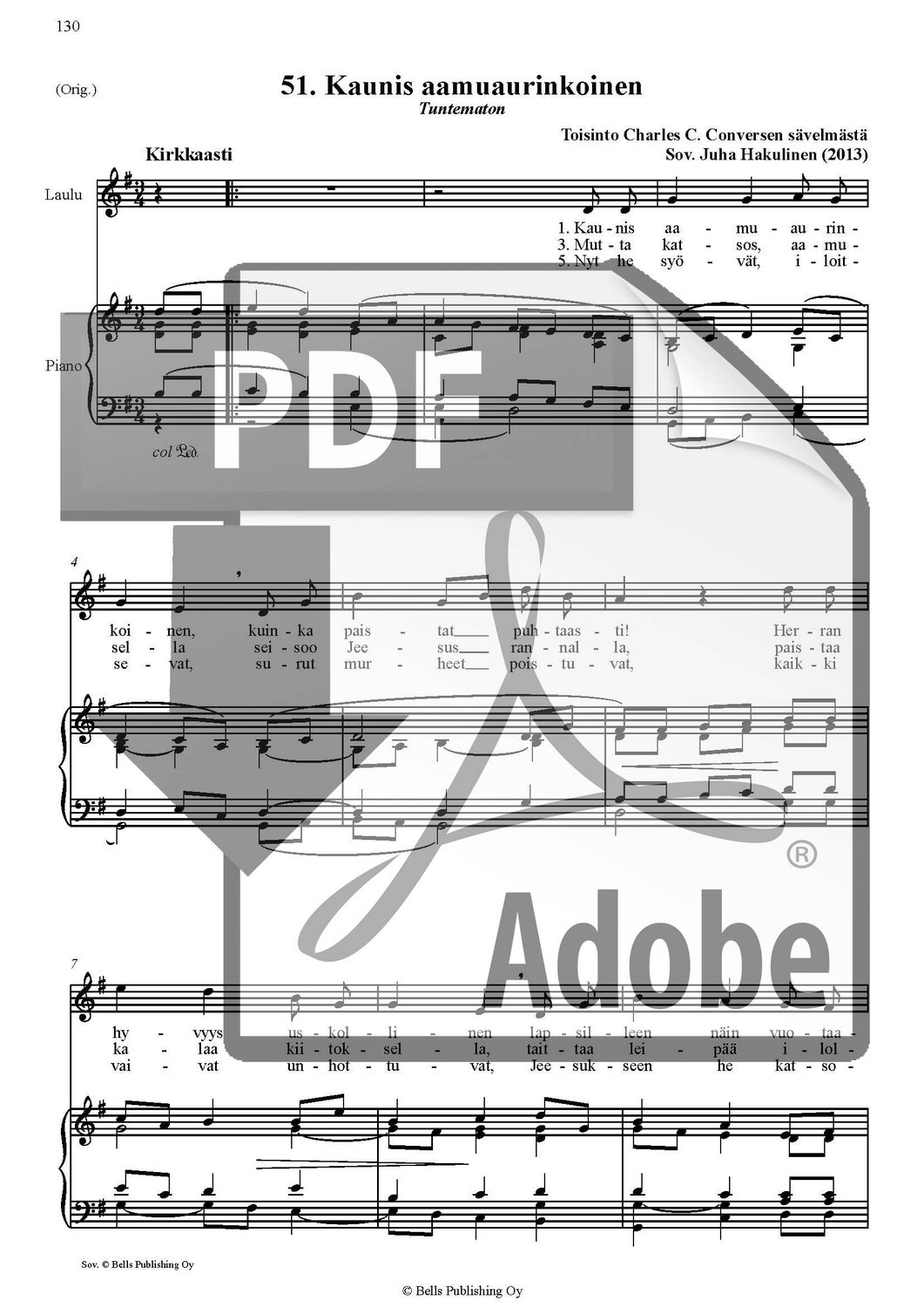 Trad. (sov. Juha Hakulinen): Kaunis aamuaurinkoinen (yksinlaulu)