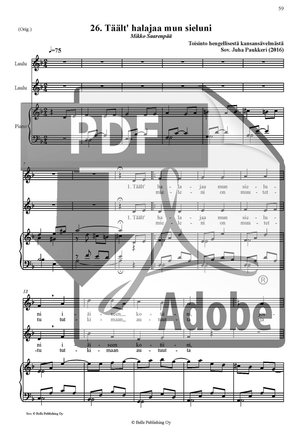 Trad. (sov. Juha Paukkeri): Täält' halajaa mun sieluni (duetto)