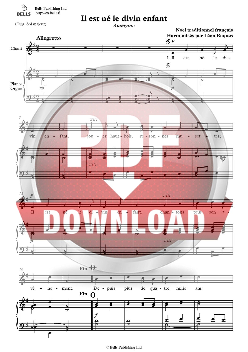 Trad. (sov. Léon Roques): Il est né le divin enfant