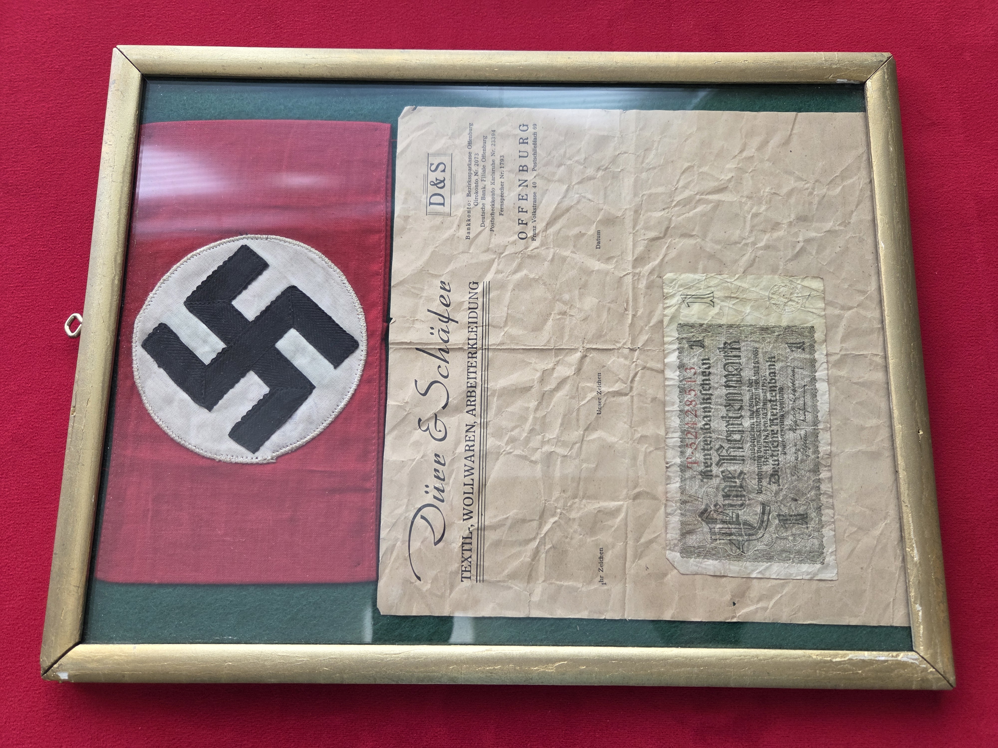 NSDAP Armband with Maker Paperwork & Money in Frame (31890)